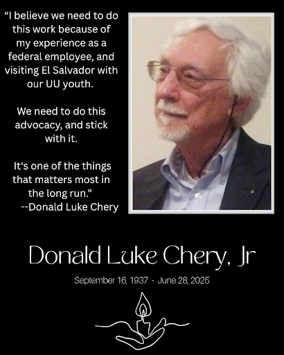 What do our immigration activists remember about Don? Let me quote from the many recollections sent by immigration teams of River Road, UUSJ, and UULM-MD, as well as CoCoDA, when they heard of his passing:
